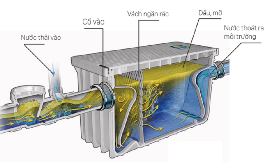Nước thải từ bể thu gom sẽ được bơm lên cụm xử lý chính: đầu tiên sẽ di qua lọc rác tinh, hai máy lọc rác tinh sẽ giữ toàn bộ phần rác có kích thước lớn hơn hoặc bằng 0.75 mm trước khi nước thải di tiếp vào bể tách dầu mỡ.